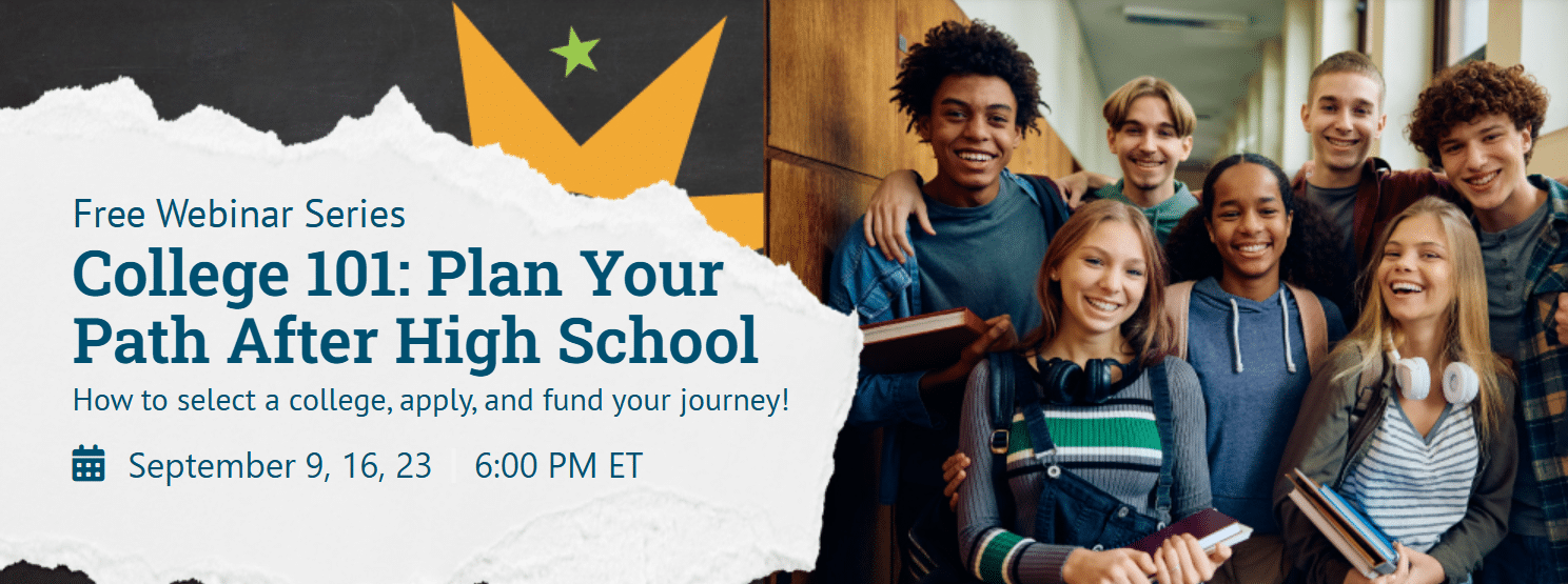 This September, the annual College 101 virtual sessions return for students and families to learn more about the college-going process. Each session will cover a key topic including: college and career pathways, the application process, and how to pay for a postsecondary education.