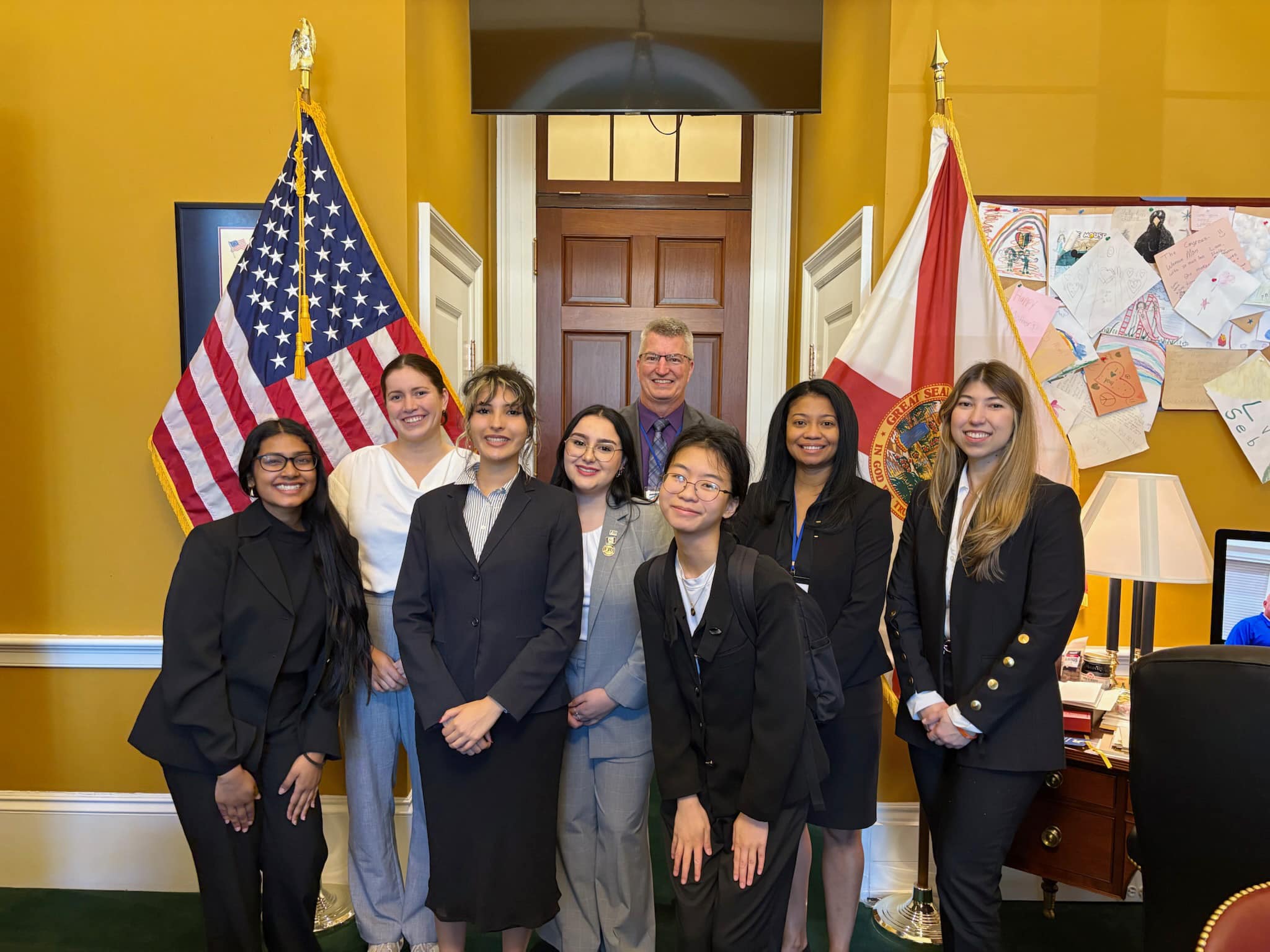 Student advocacy fellows, along with Chuck Tiernan of the Community Foundation Tampa Bay, Connie Huang, a University of Florida student, and Dr. Carjamin Scott, President of the Equalizer Foundation met with Congresswoman Debbie Wasserman staff, Lydia Colvin.