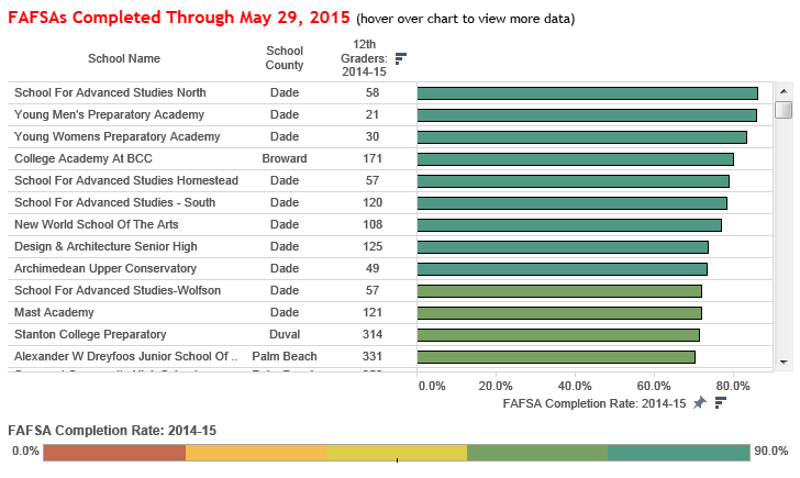Florida CAN’s FAFSA Finish Line data dashboard has been updated to include FAFSA’s completed by high school seniors through May 29, 2015.